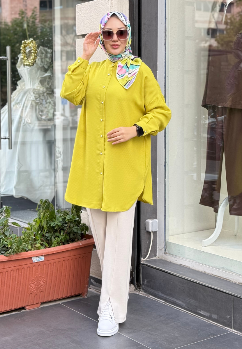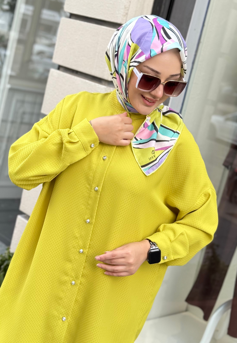 ♦ Oversize kesimi ile konforlu bir kullanım sağlarken, hakim gömlek yakası ve taş düğme detayları sayesinde hem spor hem de şık kombinlerde rahatlıkla tercih edilebilir.