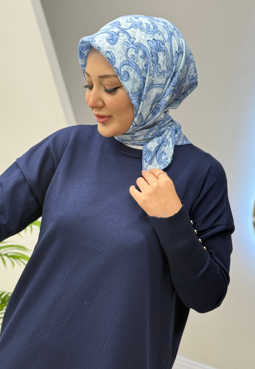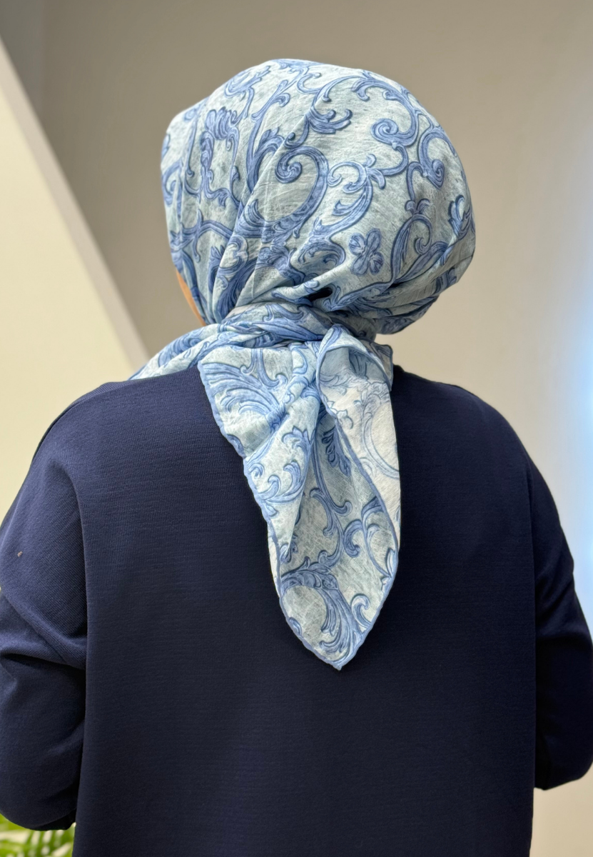 Gök Mavi Brokar Eşarp