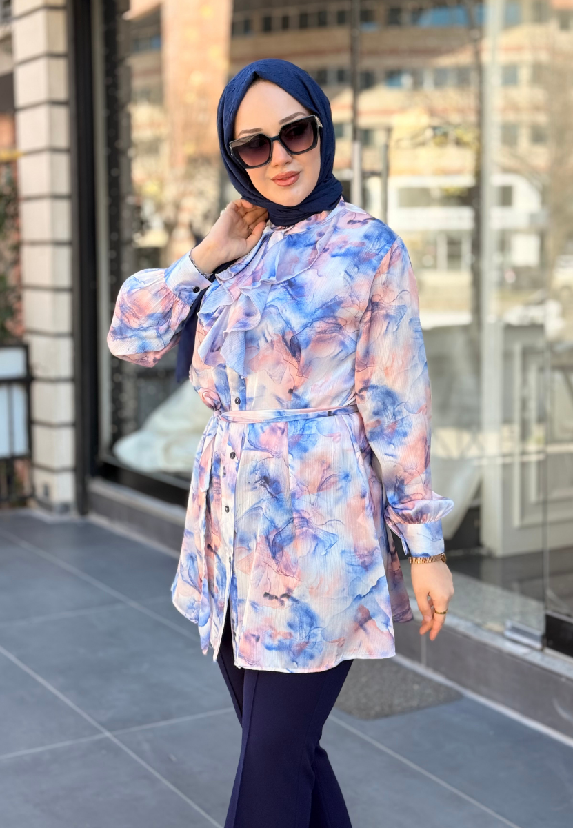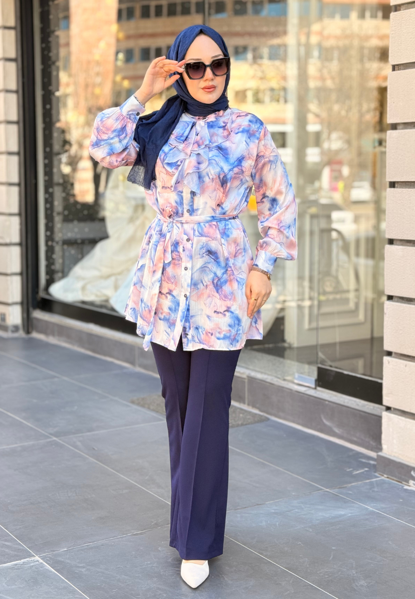 Lacivert Ebru Gömlek