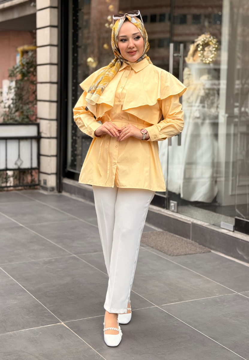 ♦ Bel kısmındaki kuşak detayı ile vücuda oturan zarif bir siluet oluşturur.